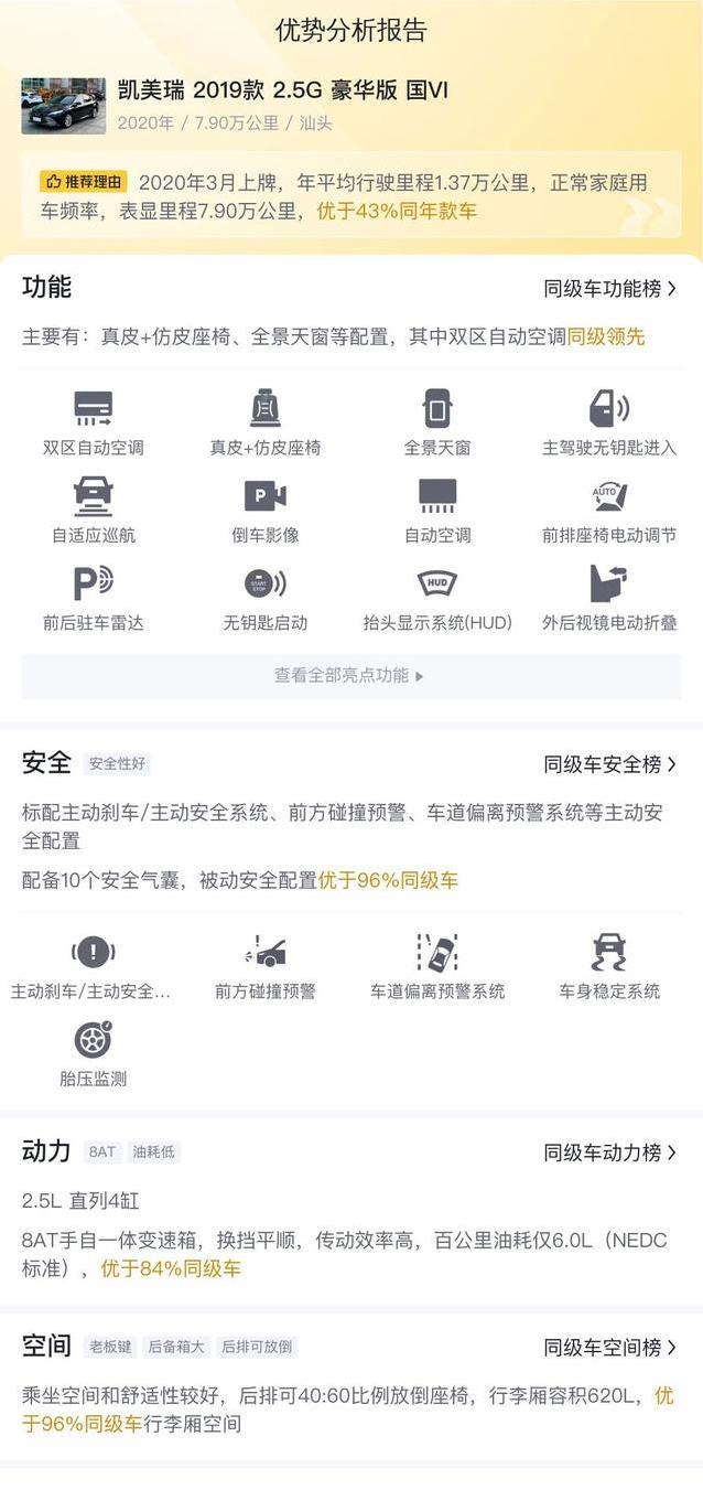 当然,二手车不是新车,总有跑过的痕迹。这辆里程七八万,算正常家用,保养得好,开个十年没问题。但买的时候,得仔细查车况,看事故记录,试驾感受下。市场数据表明,凯美瑞保值率在同级里一直很高,就算现在新能源车多起来,它二手价还是稳。相比一些车,开了几年就没人要,凯美瑞卖出去容易多了。这点,对那些打算几年换车的朋友来说,太重要了。